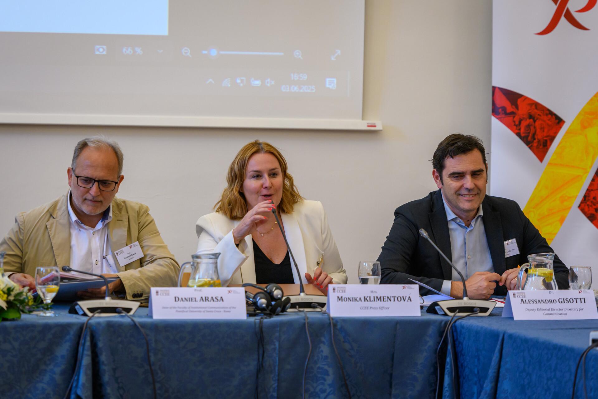 V sále kardinála Berana v Arcibiskupskom paláci zaznela úvodná prednáška na tému „Služba cirkevných komunikátorov pre cirkev v súčasnom kontexte“, ktorú predniesol Dr. Daniel Arasa, dekan Fakulty sociálnych inštitucionálnych komunikácií Pápežskej univerzity Svätého kríža v Ríme. Nasledovala podnetná diskusia.