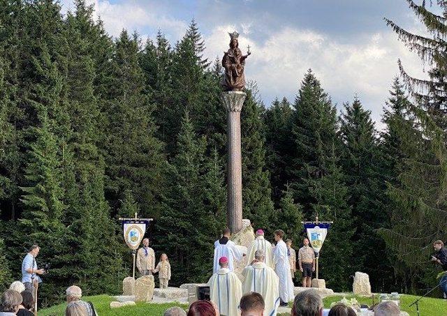 Krkonoše 18. augusta (TK KBS) Slávnosť Nanebovzatia Panny Márie, ktorú prežilo v piatok 15. augusta pri Erlebachovej búde v Krkonošiach štyristo pútnikov, sa stala vyvrcholením niekoľkoročného úsilia, ktoré bolo korunované požehnaním Mariánskeho stĺpu Kráľovná hôr.