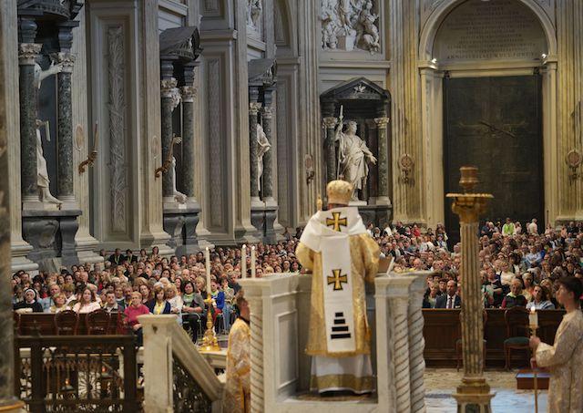 Slovenskí gréckokatolíci s biskupmi začali jubilejnú púť liturgiou v Lateráne