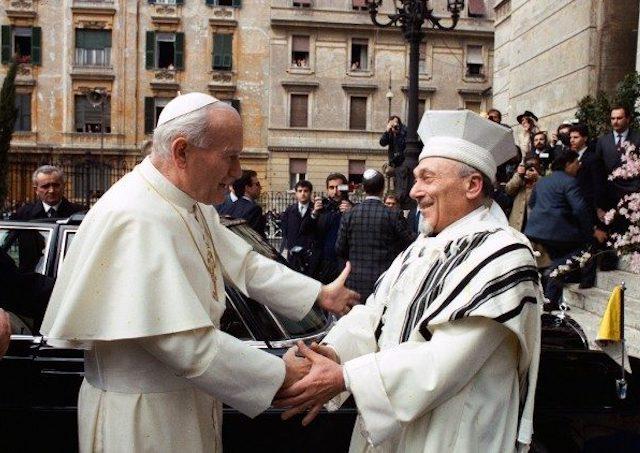 Trinásteho apríla 1986 ako prvý pápež v dejinách navštívil rímsku synagógu, kde židov nazval „našimi staršími bratmi“. Pri 25. výročí Nostra aetate zdôraznil, že deklarácia je trvalým základom dialógu a uznania spoločného duchovného dedičstva.