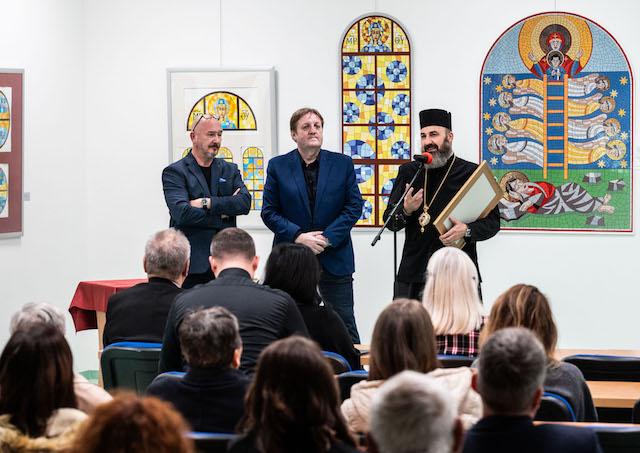 „Mozaika je akýsi obraz o živote človeka. Nikto sa ňou nemôže zaoberať sám, lebo by to nedal. Mozaika je dielom celého tímu ľudí. Skladá sa z mnohých kamienkov, skutočne prostej matérie, ktorá však vypĺňa priestor,“ uvažoval o hlbšom význame diel na vernisáži vladyka Jonáš Maxim. „Až posledný kamienok dá ucelený pohľad na ten-ktorý výjav. To je obraz o živote človeka – človek nie je sám, máme skúsenosť, že je vždy v spoločenstve ľudí a naša osobná ‚mozaika‘ bude doplnená až posledným výdychom nášho života,“ pokračoval arcibiskup.