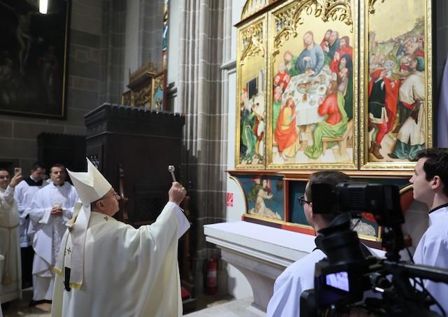Košice 18. novembra (TK KBS) V košickej Katedrále sv. Alžbety sa počas odpustovej slávnosti uskutočnilo verejné predstavenie rekonštrukčnej prezentácie zaniknutého Oltára Poslednej večere. Požehnal ju košický arcibiskup metropolita Mons. Bernard Bober. Slávnostnú omšu doplnila interpretácia Missy st. Bernardi od J. Haydna v podaní sólistov, Zboru a orchestra sv. Cecílie pod taktovkou Viliama Gurbaľa.
