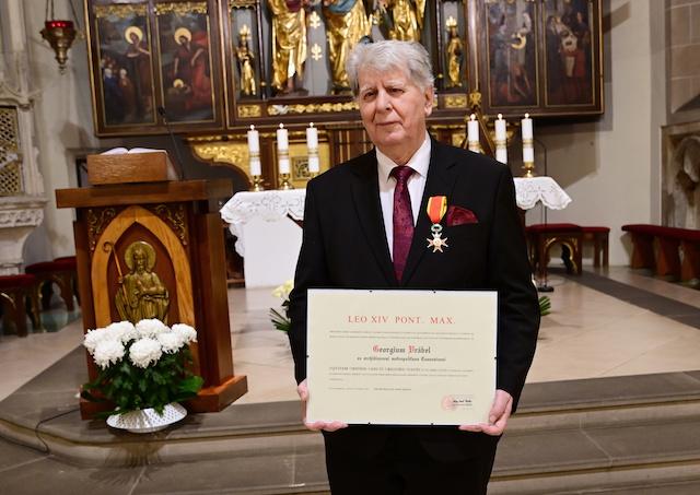 Sabinov 19. novembra (TK KBS) V predvečer Dňa boja za slobodu a demokraciu zažila Rímskokatolícka farnosť Mučeníckej smrti sv. Jána Krstiteľa v Sabinove mimoriadnu udalosť. Pápež Lev XIV. udelil Rytiersky rád sv. Gregora Veľkého civilnej triedy Jurajovi Vráblovi staršiemu za jeho dlhoročné zásluhy pre Cirkev i spoločnosť.