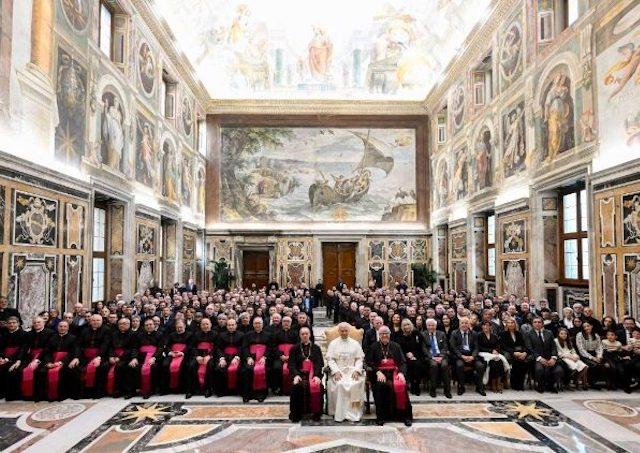 V úvode svojho prejavu sa Svätý Otec venoval vzťahu teológie, práva a pastorácie v Cirkvi, povedal: „Naopak, pomerne často sa stáva, že sa tieto tri rozmery implicitne stavajú proti sebe, akoby viac teologický alebo pastoračný rozmer znamenal menej právny rozmer a naopak, právnejší rozmer bol na úkor ostatných dvoch rozmerov. Tým sa zakrýva harmónia, ktorá naopak vyniká, keď sa tieto tri rozmery považujú za časti tej istej reality.“
