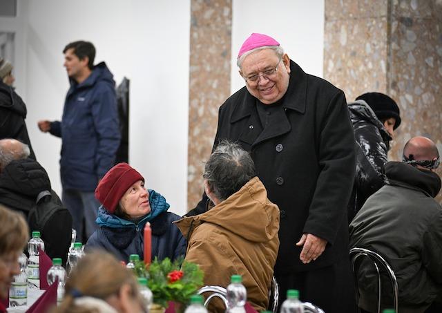 V príhovore sa podelil o inšpiratívne príbehy zo života a o svoje osobné skúsenosti so stretávaním ľudí bez domova v uplynulých rokoch, na ktorých si s úctou zaspomínal. Zdôraznil hodnotu každého ľudského života, dôstojnosť človeka a význam vzájomnej solidarity, osobitne v období vianočných sviatkov. Následne sa s prítomnými spoločne pomodlil a požehnal štedrú večeru.