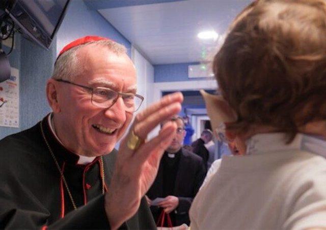 „Prinášam vám pozdrav Svätého Otca a jeho najlepšie priania,“ uviedol kardinál Parolin zhromaždeným v nemocničnej kaplnke, kde sa uskutočnila chvíľa zamyslenia.