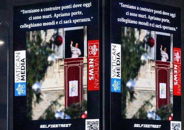 Vianočná kampaň pod záštitou Dikastéria pre komunikáciu v spolupráci so Selfiestreet využíva veľké obrazovky inštalované v blízkosti Vatikánu. Iniciatíva, ktorá potrvá do 31. decembra, je však tiež široko zdieľaná na sociálnych médiách. Podľa tlačového oznámenia „prítomnosť posolstva Svätého Otca na verejných priestranstvách počas vianočného obdobia chce byť znamením duchovnej blízkosti a pripomienkou hodnôt pokoja, nádeje a bratstva“.