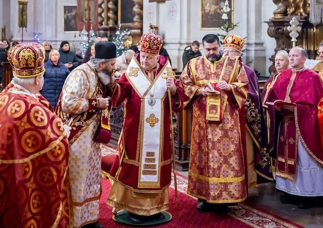Za rímskokatolícku cirkev sa na liturgii zúčastnili emeritný pomocný biskup pražský Václav Malý, pomocný biskup olomoucký Antonín Basler, veľmajster a generál Rytierskeho rádu Krížovníkov s červenou hviezdou P. Josef Šedivý a dómsky farár a dekan kapituly u Všetkých svätých Mons. Milan Hanuš, ktorý v Apoštolskom exarcháte pôsobil viac než 25 rokov.