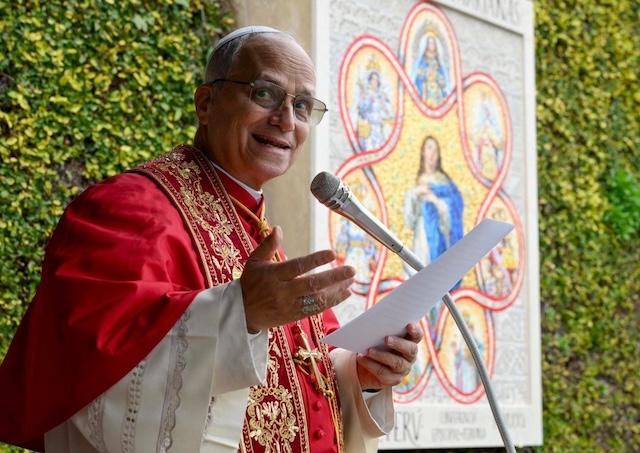 Peruánska biskupská konferencia teraz využila svoju kánonickú návštevu Ad limina apostolorum a venovala do pápežských záhrad mozaiku zachytávajúcu podoby a tituly Panny Márie, pod ktorými je uctievaná na peruánskych pútnických miestach, a sochu jednej z hlavných patrónok krajiny, sv. Ruženy z Limy (1586 – 1617).