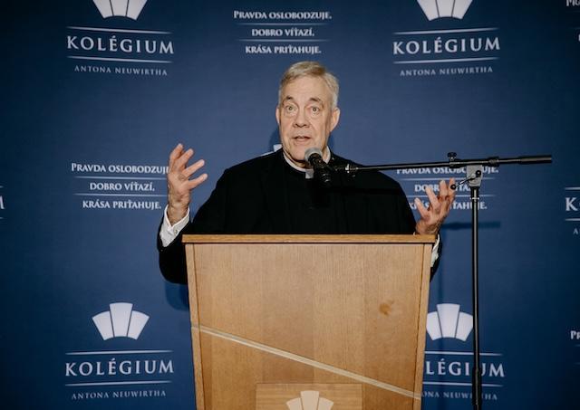 Hlavným rečníkom bol Robert Sirico, katolícky kňaz a zakladateľ Inštitútu sv. Johna Henryho Newmana. Lídrom katolíckeho školstva pripomenul odkaz sv. Cyrila a Metoda: „Boli tvorcami slovenskej kultúry prostredníctvom prekladu písma a formovaním misionárov. Moderné Slovensko toto dedičstvo prevzalo. Slovenský národ môže byť hrdý a čerpať energiu z vplyvu katolicizmu na formovanie ľudskej mysle.“