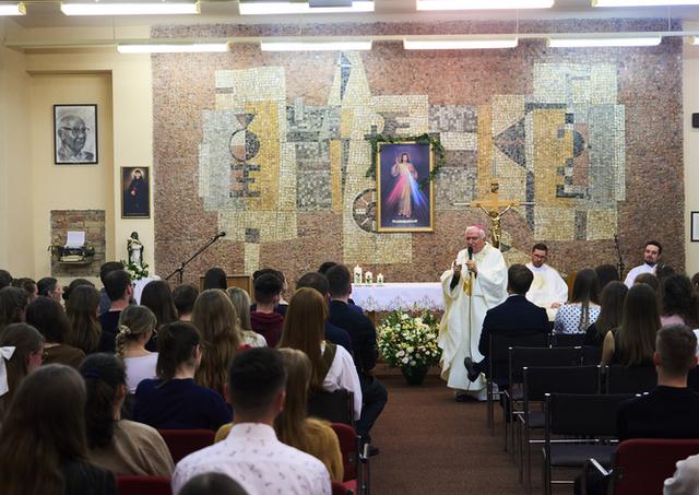 Vrcholom osláv bola slávnostná svätá omša vo veľkej študovni, ktorú celebroval apoštolský nuncius na Slovensku Mons. Nicola Girasoli. Vo svojom príhovore povzbudil mladých k hlbokej dôvere v Boha.