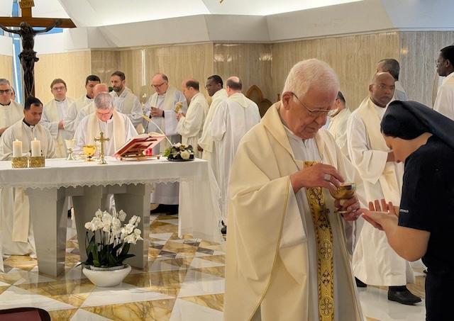 Vatikán 21. apríla (VaticanNews) „Som si istý, že pápež František si tento dom obľúbil a my zase jeho. Taký zostáva duch našej modlitby za jeho dušu v tomto prvom roku od jeho odchodu. Stále ho cítime blízko pri nás,“ uviedol kardinál Angelo Acerbi v kázni, ktorú prečítal arcibiskup Luigi Travaglino, apoštolský nuncius, ktorý predsedal omši v Dome sv. Marty, pri príležitosti prvého výročia úmrtia pápeža Františka.