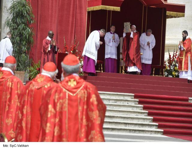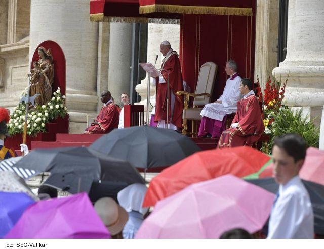 Vatikán 10. júna (RV) V deň Slávnosti Zoslania Ducha Svätého v nedeľu 9. júna slávil pápež František koncelebrovanú svätú omšu na Námestí sv. Petra spolu s kardinálmi, biskupmi, stovkami kňazov a okolo 25 tisíc veriacimi. Po biblických čítaniach (Sk 2,1-11, Rim 8,8-17, Jn 14,15-16.23b-26) sa Svätý Otec prihovoril v homílii, ktorú prinášame v plnom znení.Aj v predvečer Turíc pápež František podobne predsedal sláveniu Eucharistie pri svätodušnej vigílii za účasti členov charizmatických združení a veriacich Rímskej diecézy s vystavenou milostivou ikonou Panny Márie zo svätyne Divino Amore. Pri liturgii so štyrmi biblickými čítaniami a bohatými spevmi si 50-tisícové zhromaždenie liturgickou formou obnovilo v pamäti prijatú sviatosť birmovania a verejne vyjadrilo osobný záväzok k misijnej angažovanosti, plynúci z krstu a birmovania.