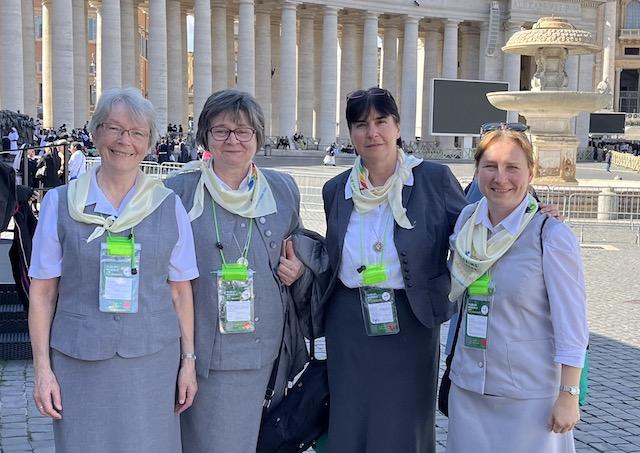 Sr. Samuela Ševčíková, vincentka: „Pre mňa už to, že som sa tu dostala, beriem ako stopy od Boha, lebo sme mali mnohé ťažkosti, aj s ubytovaním. Ja si robím starosti pre mnohé veci, a pritom Pán to má už dávno premyslené. Ja som tu aj pracovala a mám tu mnoho známych, ktorých som túžila vidieť. Slúžila som u pápeža Františka, ešte v Dome sv. Marty, bola som v blízkom kontakte so Svätým Otcom, stretávali sme sa každý deň, kým bol doma. Zanechal v mojom srdci stopy. Aj vatikánski žandári mi povedali, že vy dvaja keď ste sa stretli, tak ste mali sviatok, vám stačila osobná prítomnosť. Túžila som ísť aspoň na jeho hrob, dotknúť sa ho, keď sa dá. A Pán Boh mi dláždil všetku tú cestu, že som ostala v úžase a slzách. Mohla som si oživiť mnohé spomienky, Pán Boh mi splnil priania a dal milosti nad očakávania. A tiež som mohla zažiť tú rôznorodosť v ešte väčšej miere. Vo všetkej beznádeji navonok, či už sa týka vojny alebo chudoby alebo kríz, tak je tu nádej. Aj v tom, že v zasvätených žije Boh a dáva nádej aj tým, čo ju nemajú. Dávať nádej, aj keď vidím veci čierno alebo len malé svetielko niekde bliká – to je mojím poslaním aj v Českej republike, kde momentálne žijem. Život viery je tam dosť neistý – pracujem s laikmi, ktorí sú dobrí v srdci, ale povedia, že Boha nepotrebujú alebo im nič nechýba. Ak mám radosť, tak je to s jeho silou. Som šťastná aj napriek veciam, ktoré sú náročné.“