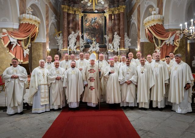 Biskupi tiež oslavovali každý deň spoločné bohoslužby v kláštornom Kostole Nanebovzatia Panny Márie a vo svojich modlitbách pamätali aj na chorého kardinála Dominika Duku, emeritného pražského arcibiskupa.