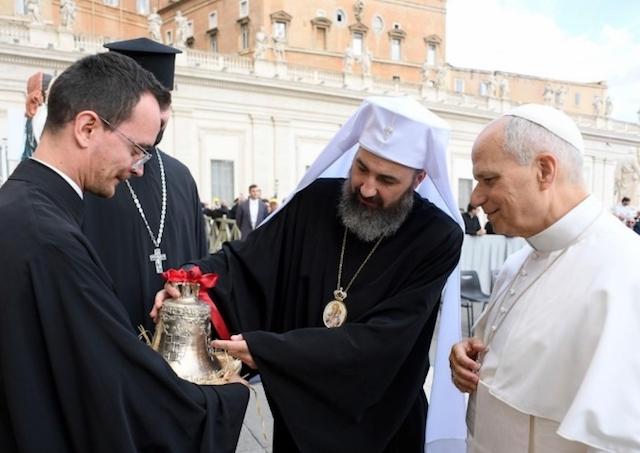 Vatikán 25. októbra (TK KBS) Slovenskí gréckokatolícki biskupi dnes pápežovi Levovi XIV. odovzdali symbolický dar – zvon z dielne mladého gréckokatolíka Mareka Šandora z farnosti Nacina Ves v Košickej eparchii. Zvon s výškou 22 cm a priemerom 22 cm vznikol ako prejav vďaky a duchovnej jednoty slovenských gréckokatolíkov pri príležitosti ich jubilejnej púte do Ríma.