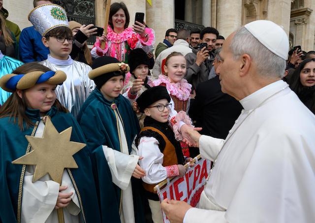 Bratislava 3. januára (TK KBS) Už po ôsmy raz navštívila na prelome rokov Rím a Vatikán skupina koledníkov Dobrej noviny zo Slovenska. Tisíce rovesníkov tentokrát reprezentovali deti z obce Heľpa.