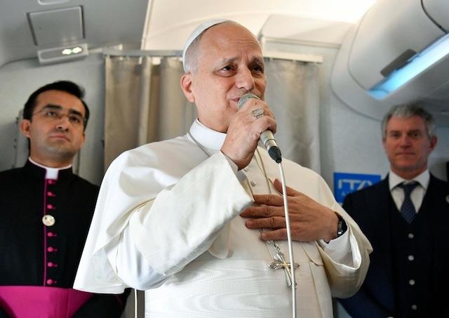 Americkej novinárke, ktorá položila rovnakú otázku, pápež zopakoval: „Nemám strach z Trumpovej administratívy. Budem aj naďalej otvorene ohlasovať posolstvo evanjelia, pre ktoré Cirkev pracuje.“ „Nie sme politici,“ zdôraznil Lev XIV., „nepozeráme sa na zahraničnú politiku z rovnakého uhla pohľadu. Veríme však v posolstvo evanjelia ako stavitelia pokoja.“
