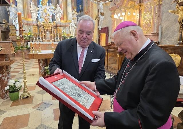 Osobne ho prijal nitriansky biskup Mons. Viliam Judák s veľprepoštom Katedrálnej kapituly Mons. Štefanom Vallom. Biskup Viliam sa aj ako odborník na históriu a cirkevné dejiny zhostil úlohy sprievodcu, a veľmajstra zoznámil s históriou starobylej Nitrianskej diecézy a starobylej Katedrály – Baziliky sv. Emeráma.